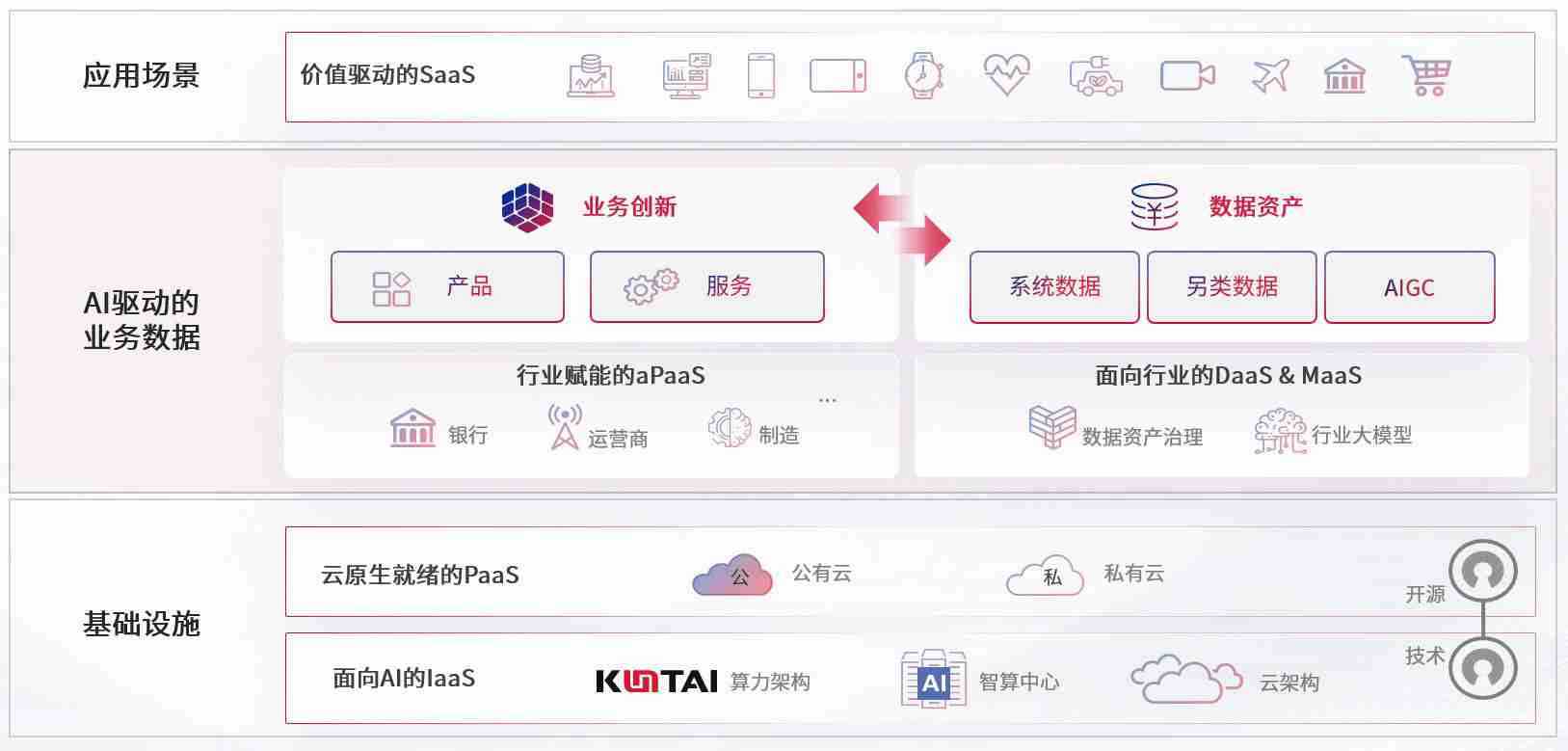 数字时代,,,,围绕企业数字化转型的关键要素,,z6com尊龙凯时数码开创性的提出数云融合战略和技术体系框架,,着力在云原生、、、数字原生、、、、AI原生和信创产业上架构产品和服务能力,,,,为处在不同数字化转型阶段的快消零售、、、、汽车、、、金融、、、、医疗、、政企、、、、教育、、、、运营商等行业客户提供泛在的敏捷IT能力和融合的数据驱动能力,,,,构建跨界融合创新的数字业务场景和新业务模式,,,,助力企业级客户建立面向未来的核心能力和竞争优势,,,,全面推动社会的数字化、、、、智能化转型升级。。